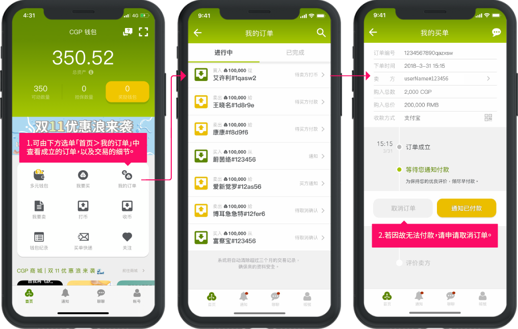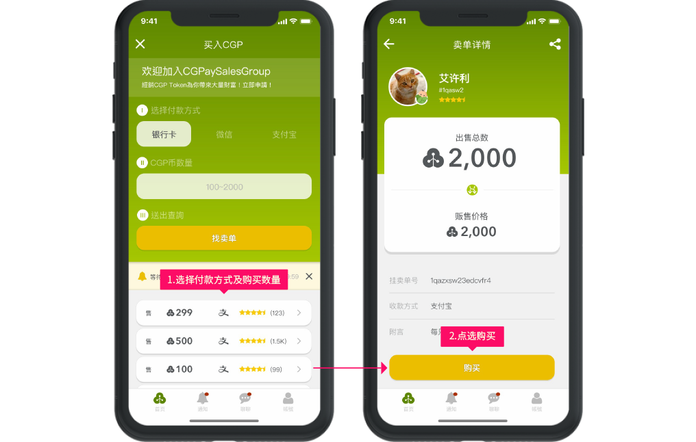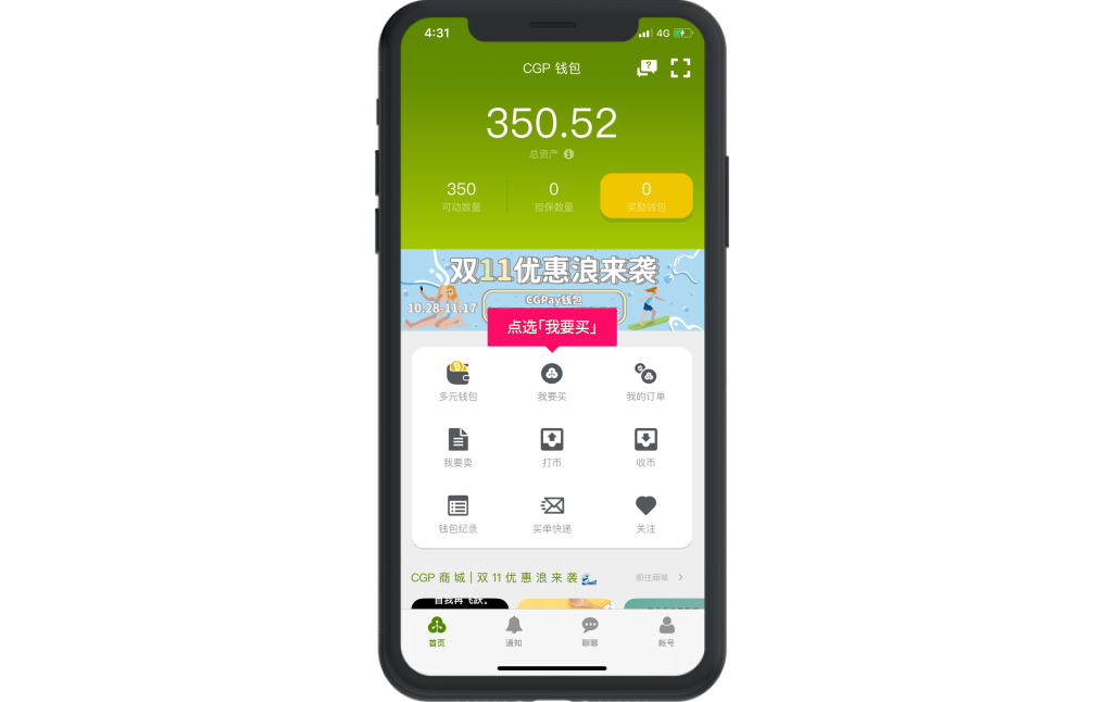 Step 1 Step 2 Step 3 Step 4 Step 5 Step 1您可经由钱包APP首页的「我要买」功能购买CGP币。 Step 2选择您想使用的付款方式及数量进行购买。 Step 3付款并且通知卖方。 Step 4查看订单详细资讯。 Step 5等待卖方查帐打币。 上一步 分享 下一步