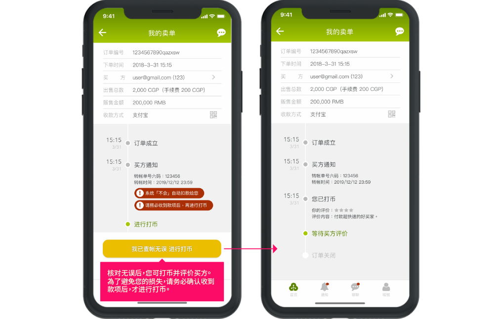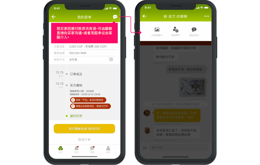 Step 1 Step 2 Step 3 Step 4 Step 5 Step 1您可经由钱包APP内的「CGP买卖」功能出售CGP币。 Step 2刊登一则卖单。 Step 3查看订单详细资讯。 Step 4买方回覆付款资讯,进行查帐与打币。 Step 5若买家因故无法付款,可取消订单或以聊聊发起争议,由客服介入处理。 上一步 分享 下一步